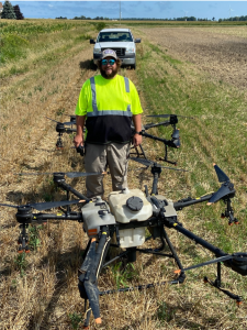 Evan Medvec, Advanced Agronomy Manager and Josh Leppeck successfully completed the Applications Services Pilot Drone Training Program. Each obtained Remote Pilot Licenses from the Department of Transportation Federal Aviation Administration, as well as their Commercial Pesticide Applicator license through Michigan Department of Agriculture and Rural Development.