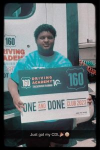 After graduating from Academy West with a scholarship, Christopher pursued his dreams by acquiring the necessary trucking skills and knowledge. Through his dedication and hard work, he successfully completed training at the 160 Driving Academy, earning a truck driving certificate. This achievement highlights the incredible power of combining passion, mentorship, and program support.
